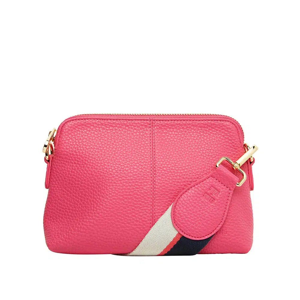 The Elms and King Burbank Crossbody offers compact functionality and the hands-free ease of a cross body. Made from premium polyurethane with 14-karat light gold-plated hardware, the Burbank interior features 3 credit cards, our signature blue& white gingham lining and ample depth for all your essentials. The crossbody features two strap options, one wide cotton webbing strap, adjustable to 140cm and a second narrow PU strap, also adjustable to 140cm.