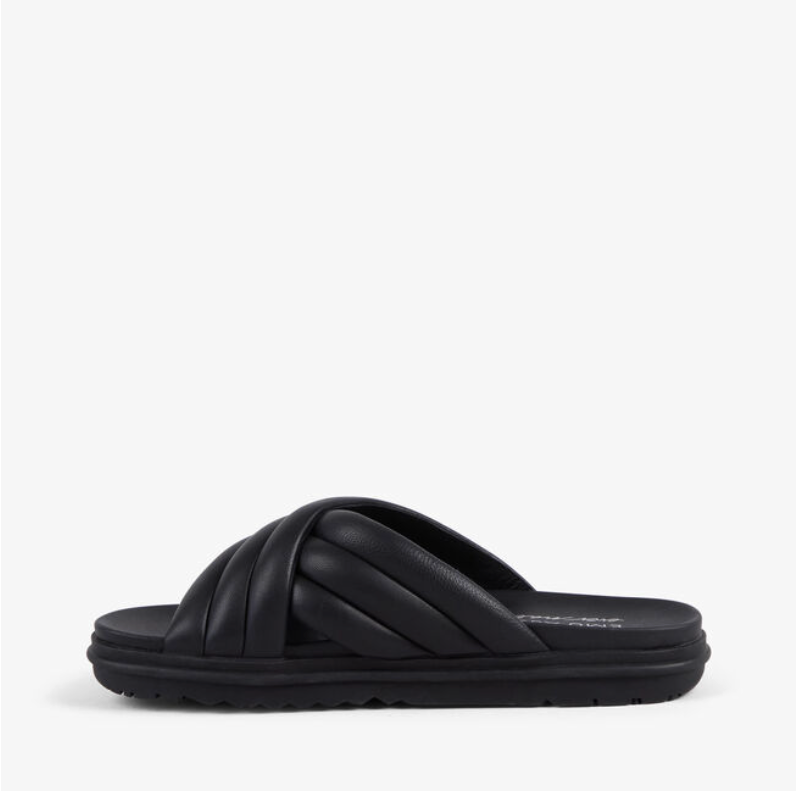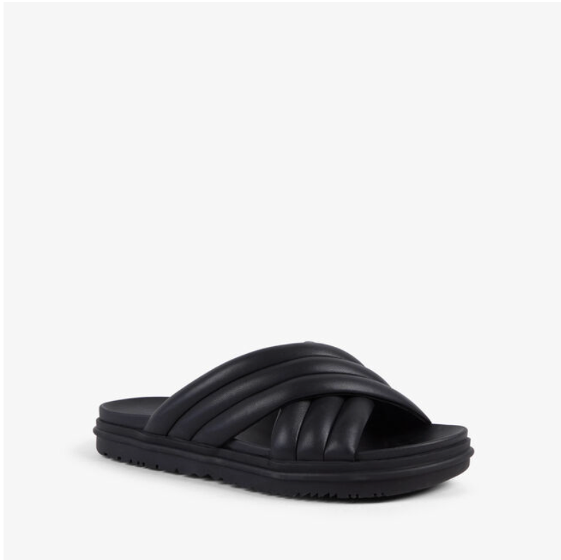 Textured and timeless, this leather crossover sandal adds a touch of detail and effortless style to every step.