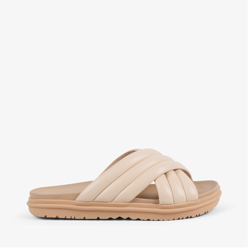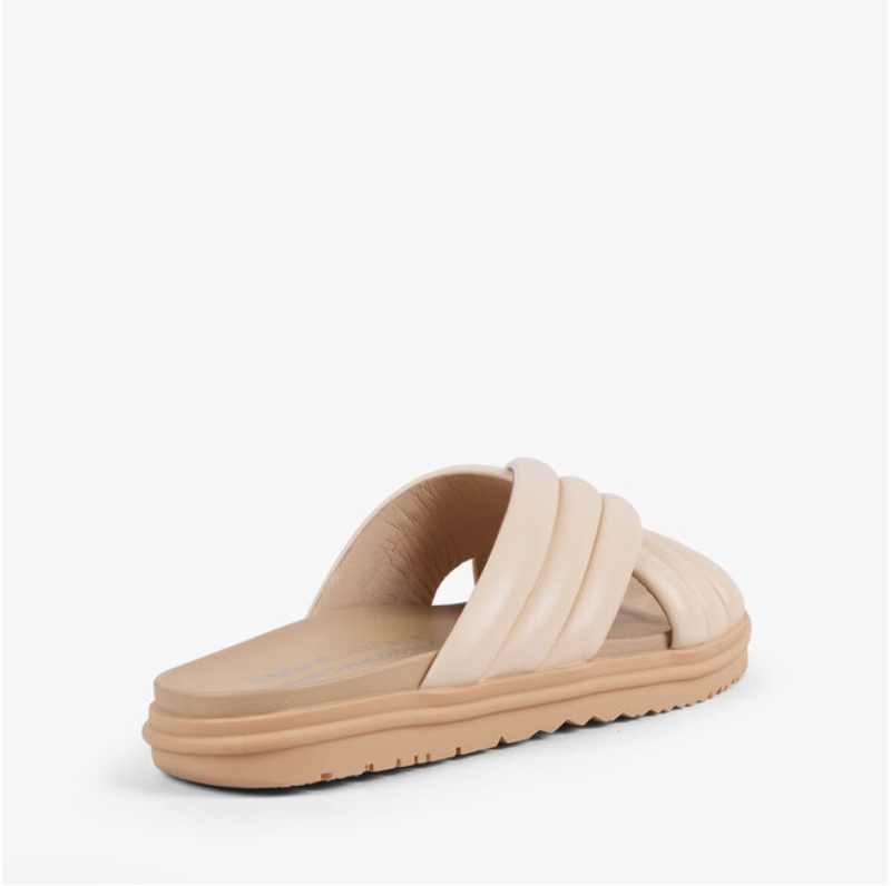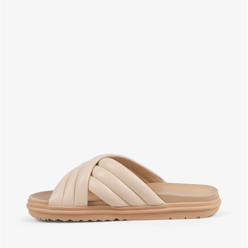 Textured and timeless, this leather crossover sandal adds a touch of detail and effortless style to every step.