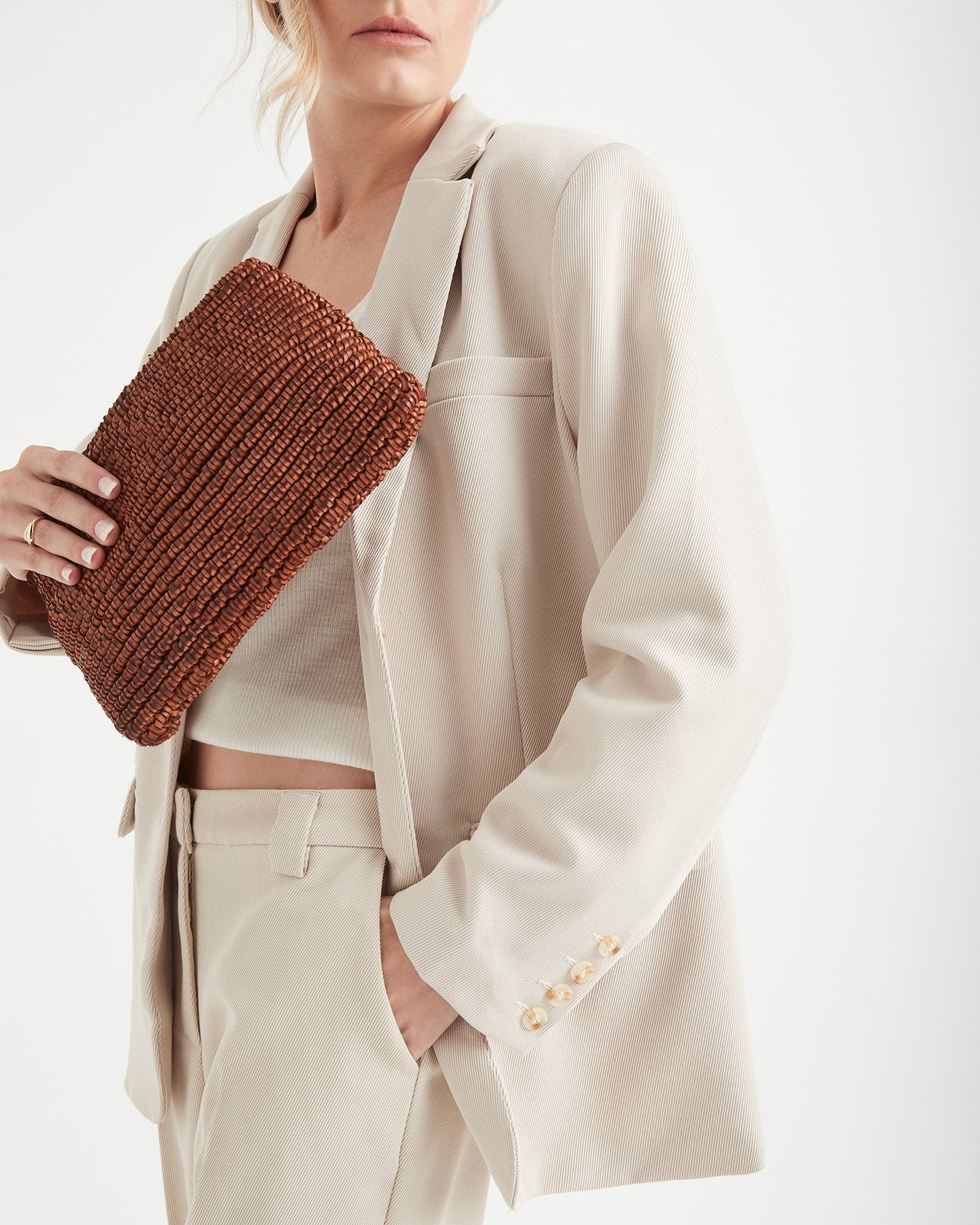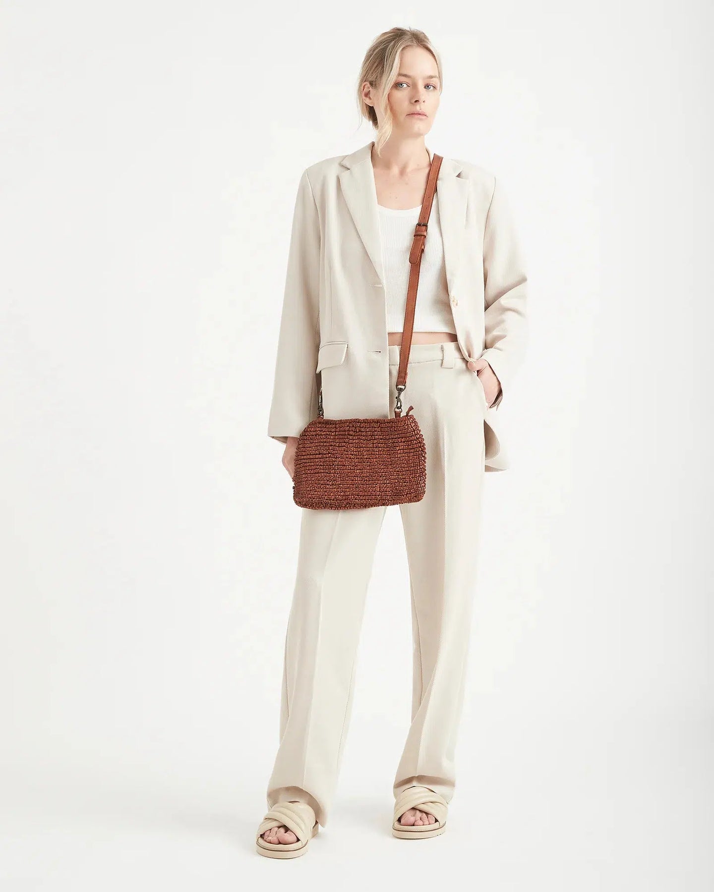 Featuring a classic rectangular silhouette and hand-woven knitted leather exterior, the Loop Bag is the ideal everyday accessory. Wear as a crossbody for everyday outings, or a clutch for more formal settings by simply removing the strap. Its premium design takes a week to craft. The Loop Bag is the perfect accessory to elevate any outfit.