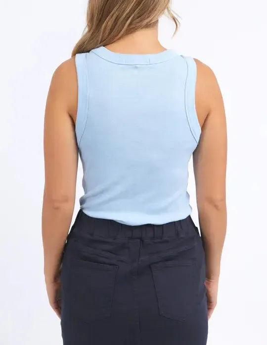 The Esme Tank is a must-have for Summer, featuring a fine rib fabrication and classic fit that is perfect for warm weather styling.