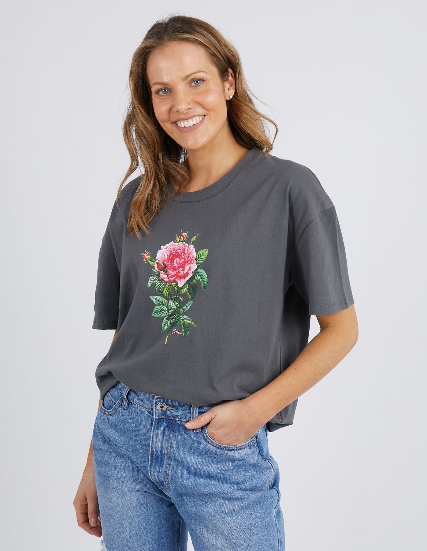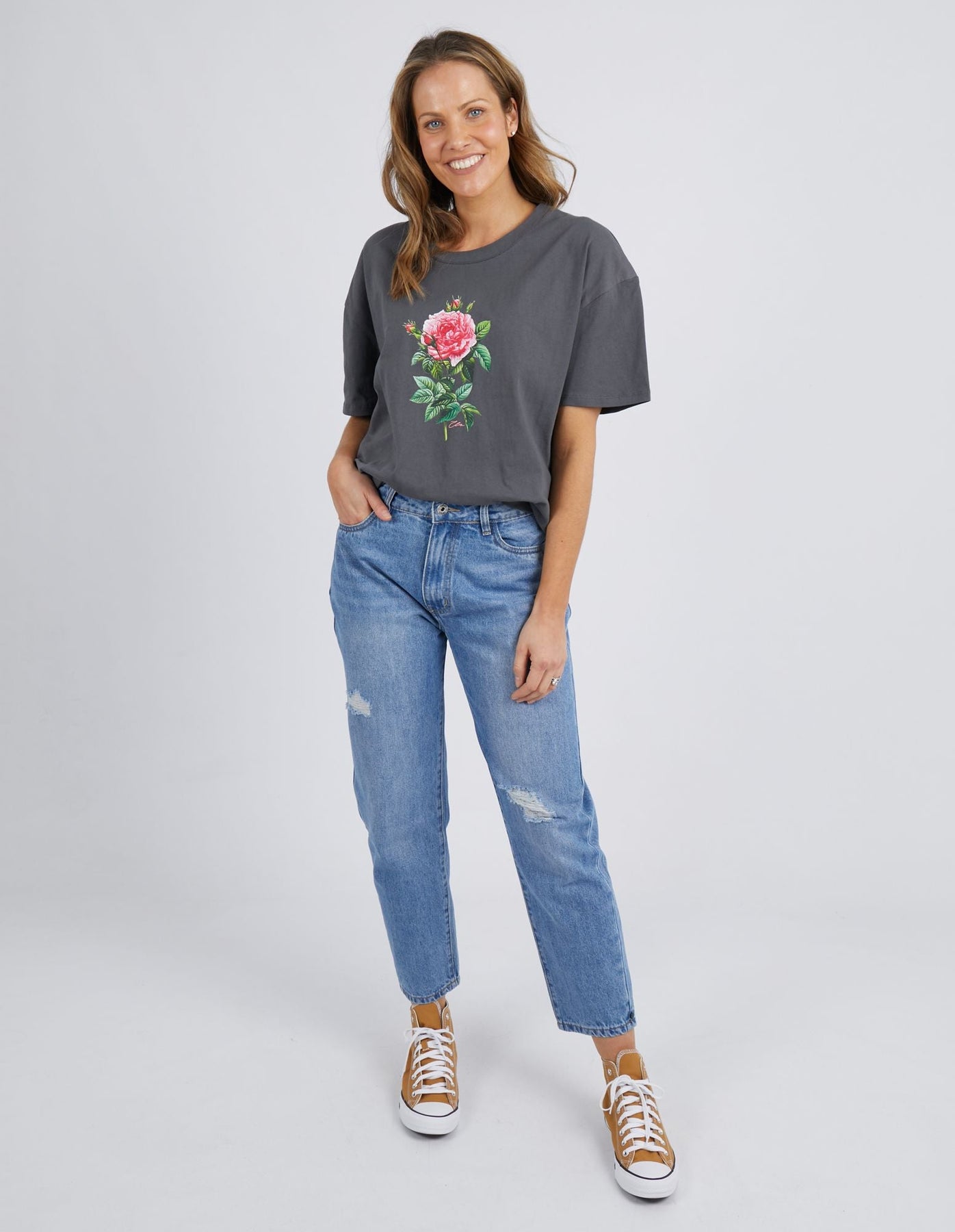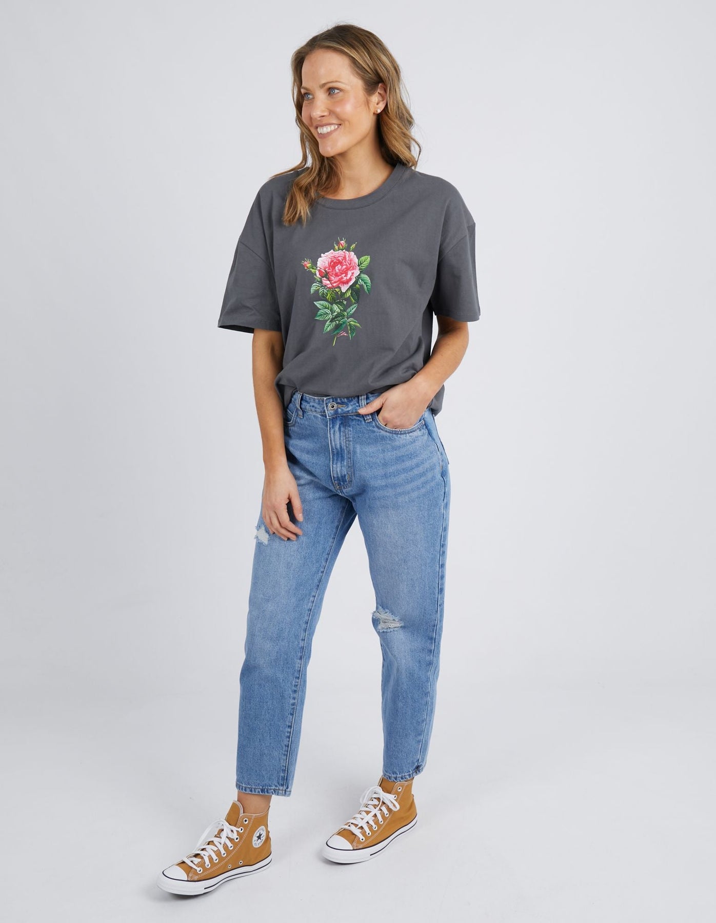 Rose Bloom Tee - It's giving us vintage, casual & weekend vibes! A classic tee to pair back with all of your favourite staple bottoms! Featuring a crew neckline, a short sleeve with shoulder coverage, long in length and a gorgeous printed rose on the front. You will be living in this tee every weekend!