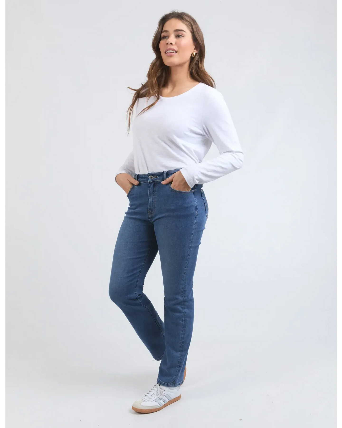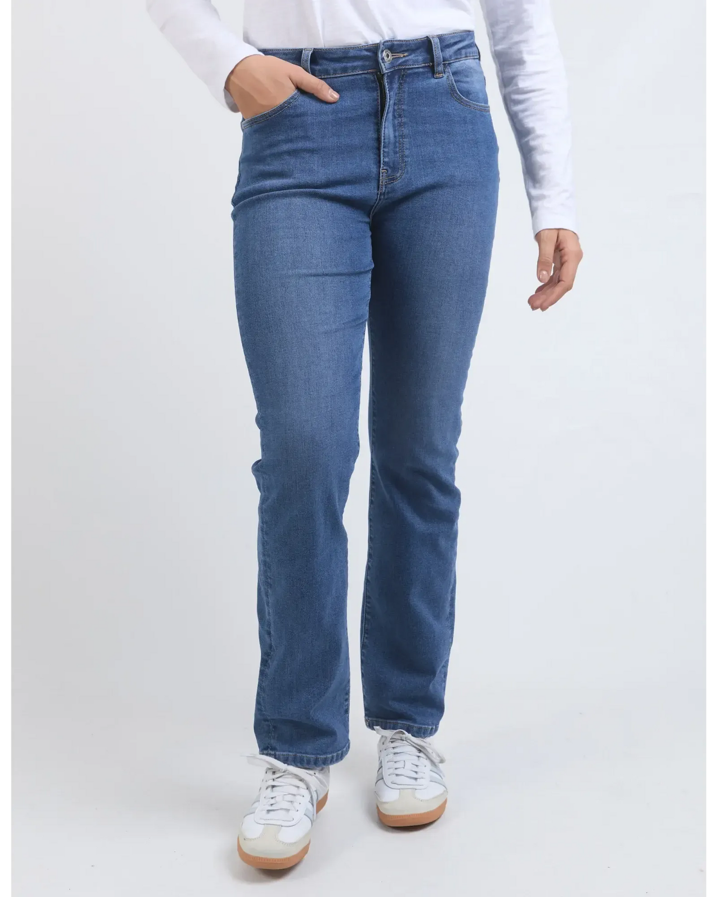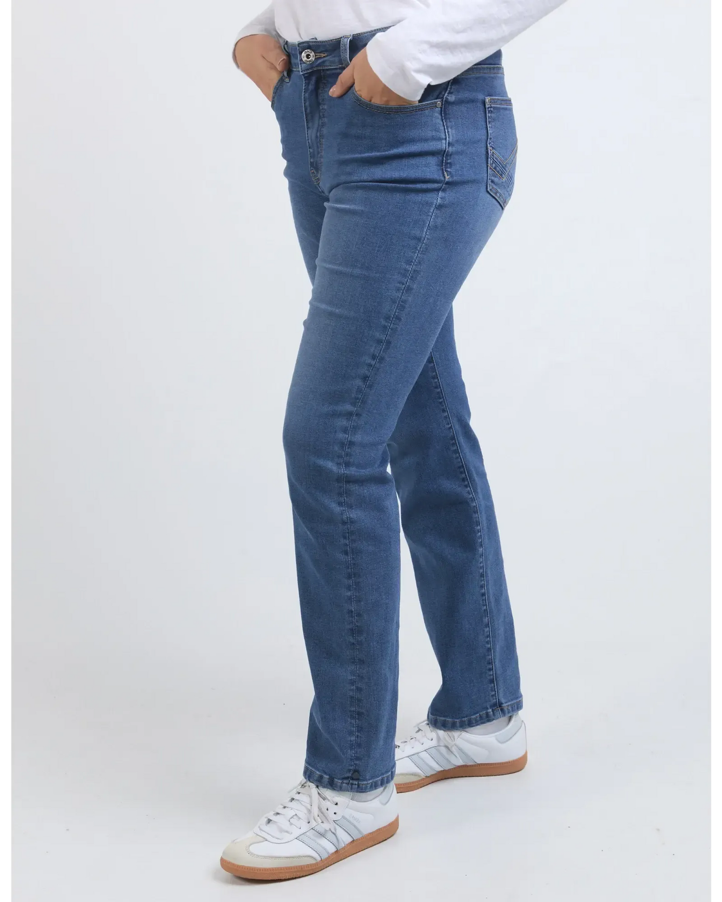 The Ada Jean is great all rounder. Made from a stretch denim it has a high rise, straight leg and grazes the ankle. This jean looks great with everything….casual or dressy.