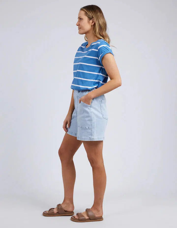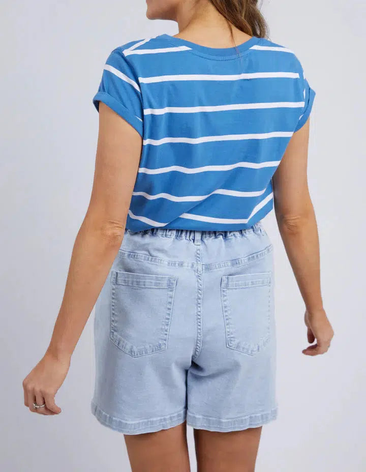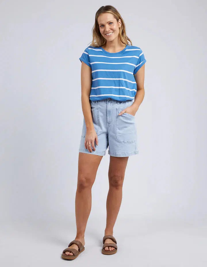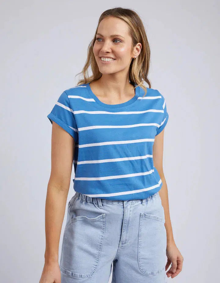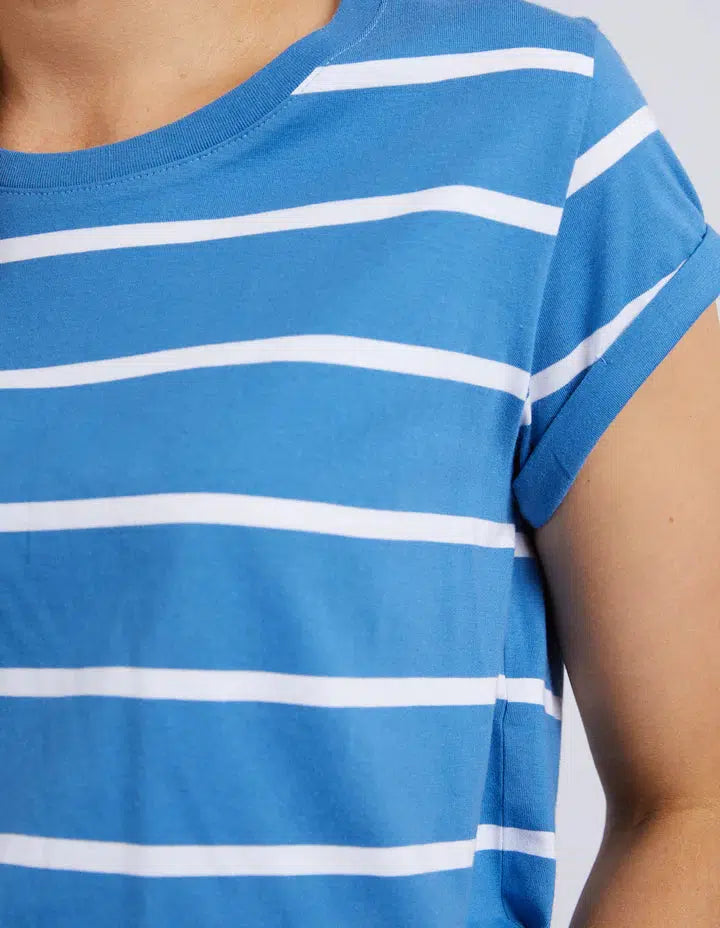 Manly Stripe Tee - Blue - This will be your favourite tee in no time! Super soft and cool in 100% Pima cotton with rolled cuff sleeves and a curved hem. Get one in every colour.
