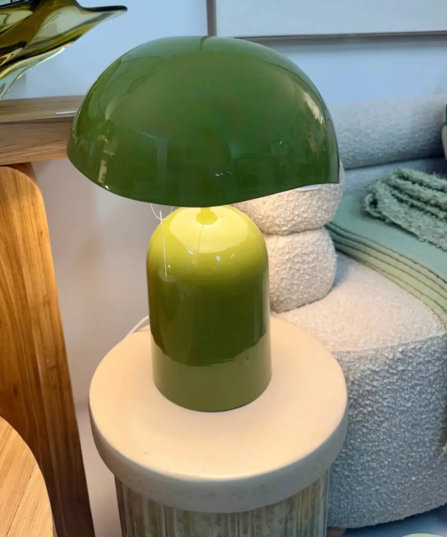 Elevate your living space with the Tarrone Metal Table Lamp, featuring a distinctive green metal base and a uniquely waved-edge shade. Measuring 43cm tall by 30cm wide, it offers an elegant balance of form and function.