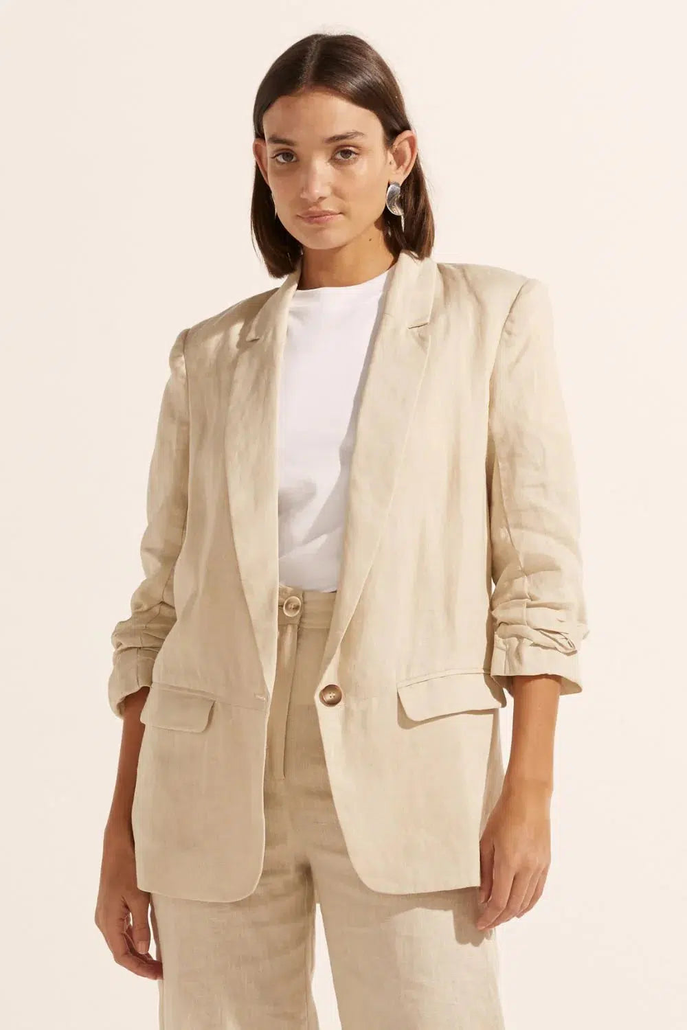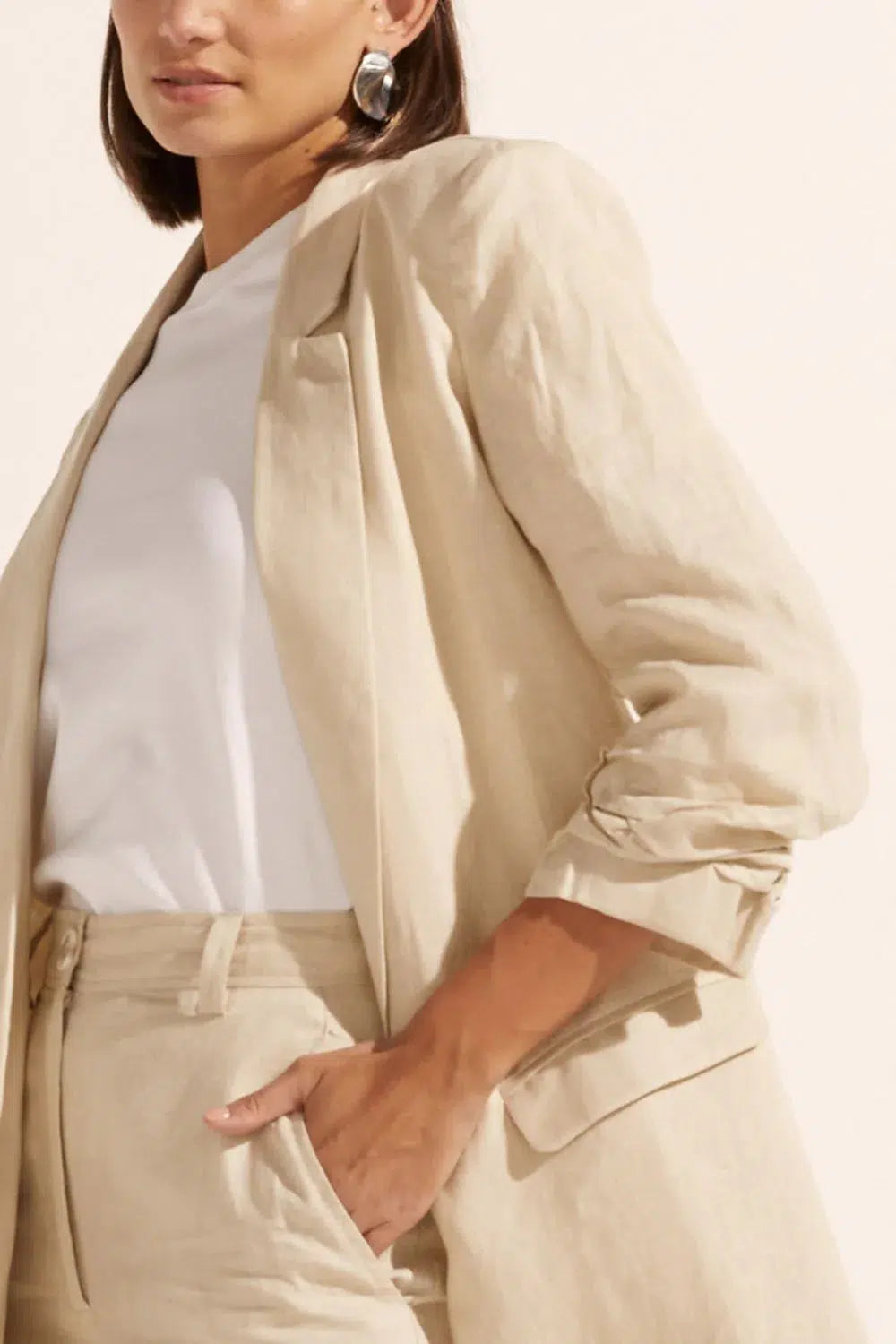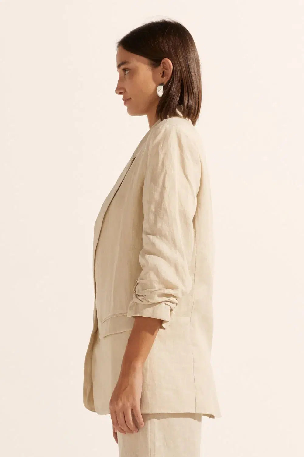 a lightly structured jacket is the perfect solution for effortless yet elevated spring dressing. this piece adds polish and edge to both dresses and pants. a ¾ ruched sleeve has a relaxed, slightly undone feel. a go-to style for spring or summer and the perfect travel companion. see product details below.