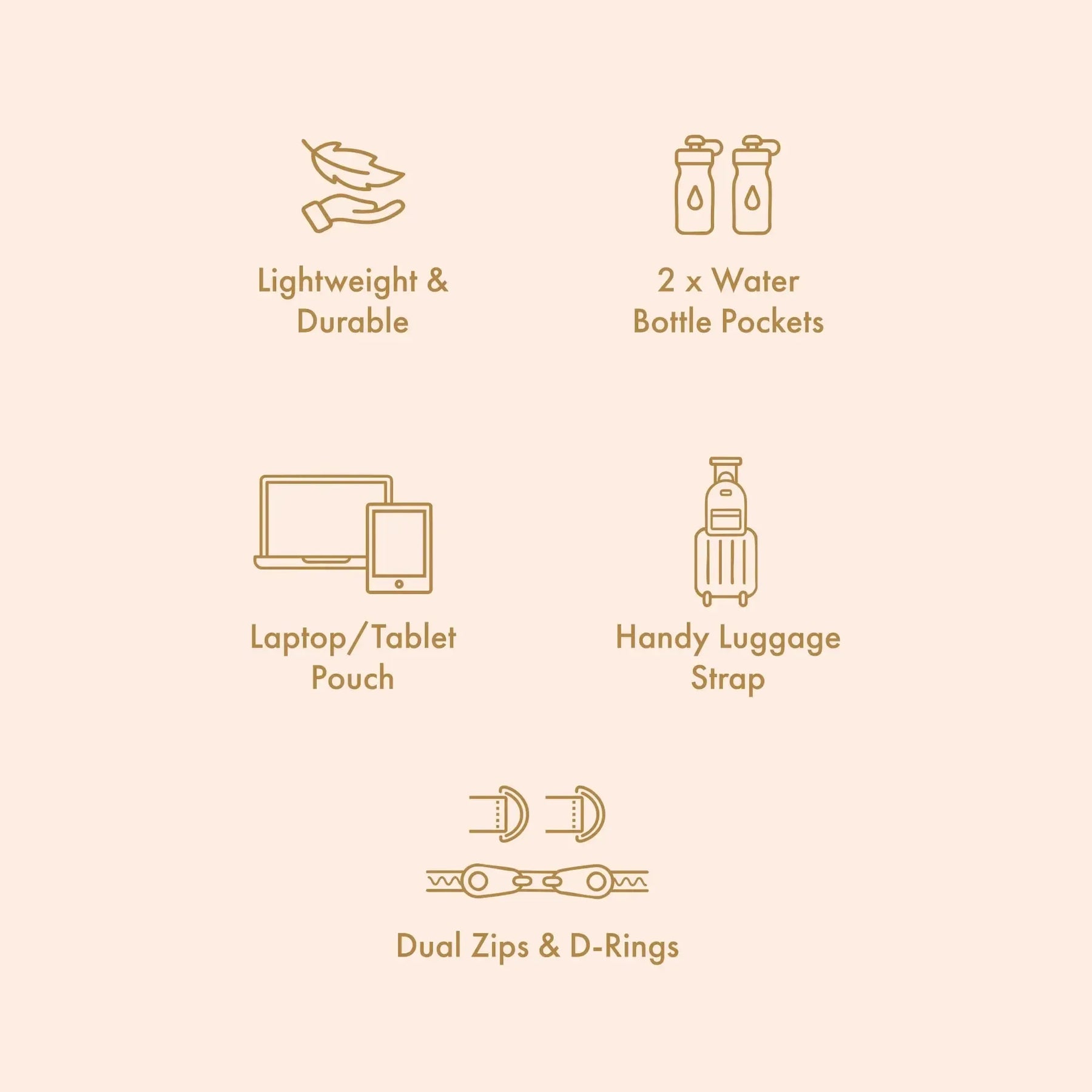 • 2 x water bottle pockets
