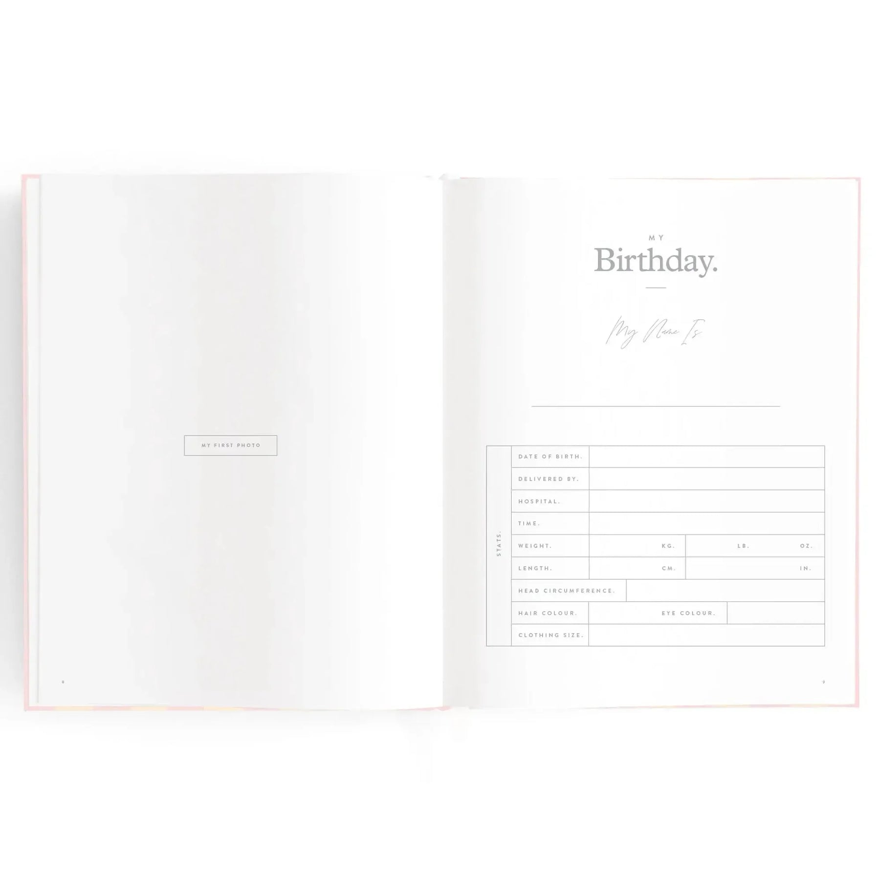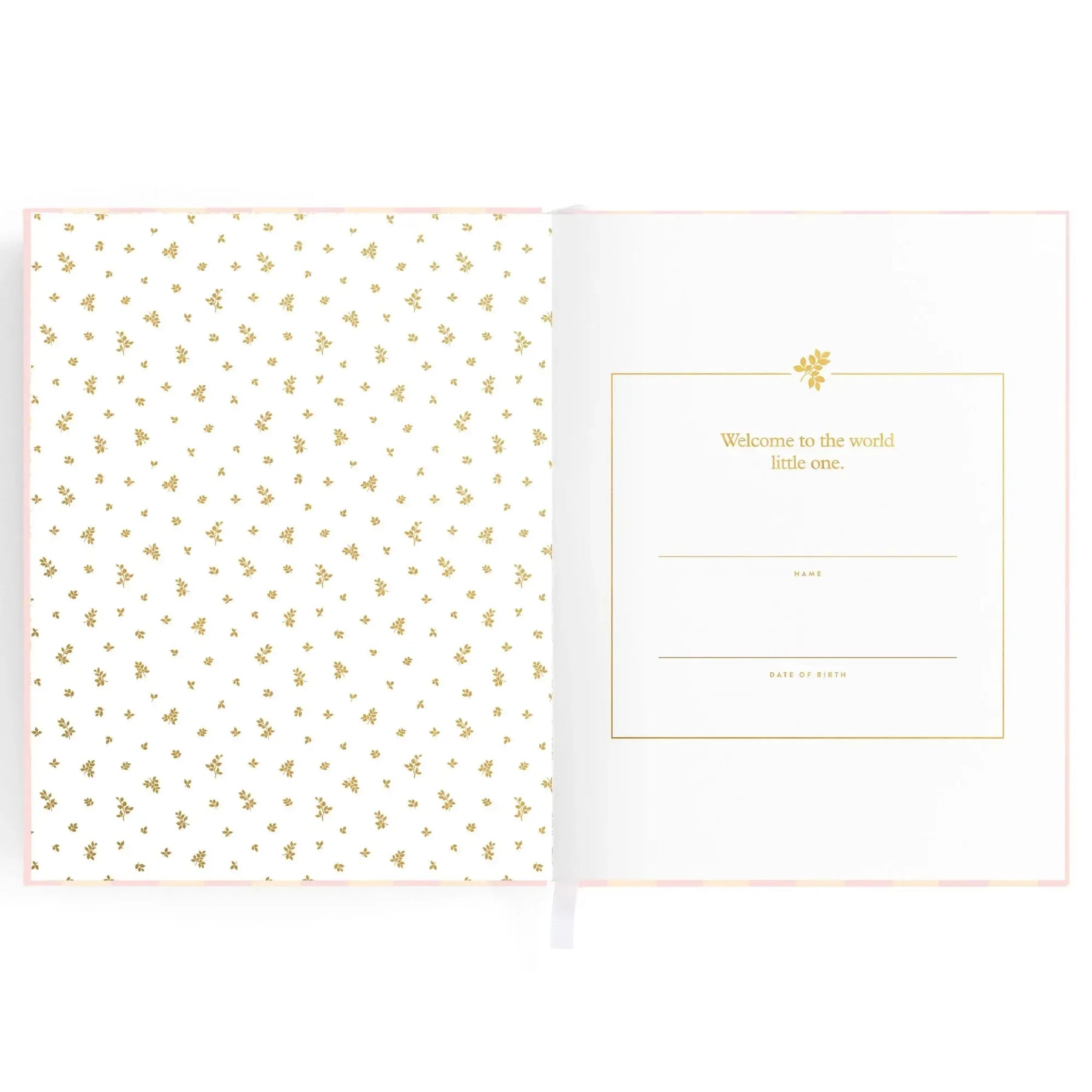 220 x 280 mm (15mm spine) / 8.6 x 11 inches (0.59 inch spine). Gold foil stamped printed linen cover. White grosgrain ribbon. 2mm foil stamped hard cover, lay-flat binding. Gold foil end pages and premium 115gsm FCS-certified acid-free paper. Packaged in a cello sleeve with gold foil bellyband. Designed in Australia, printed in China.