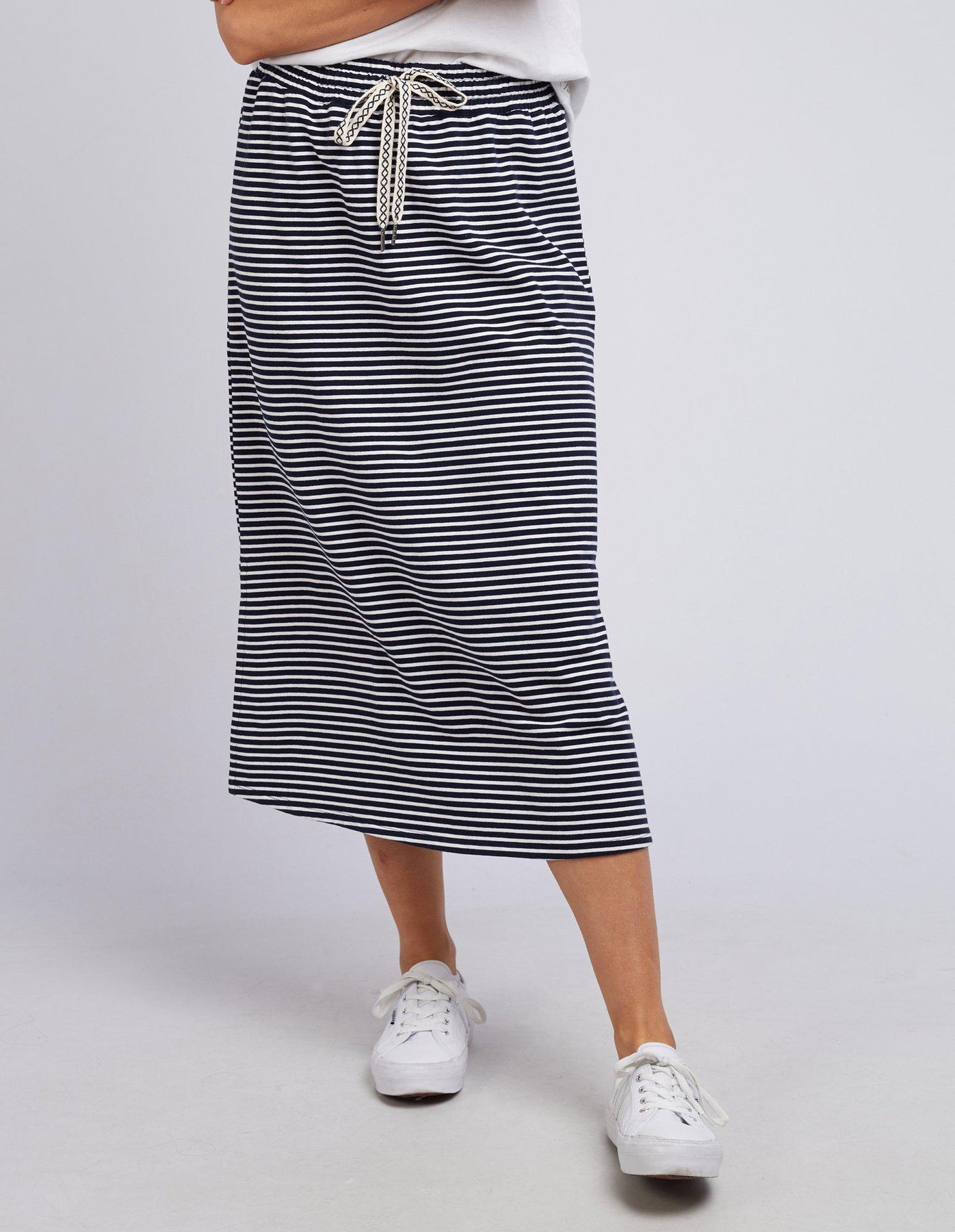 The Travel Skirt is made from a yarn dye stripe baby french terry. With an easy elastaic waist and midi length this skirt is an all rounder.