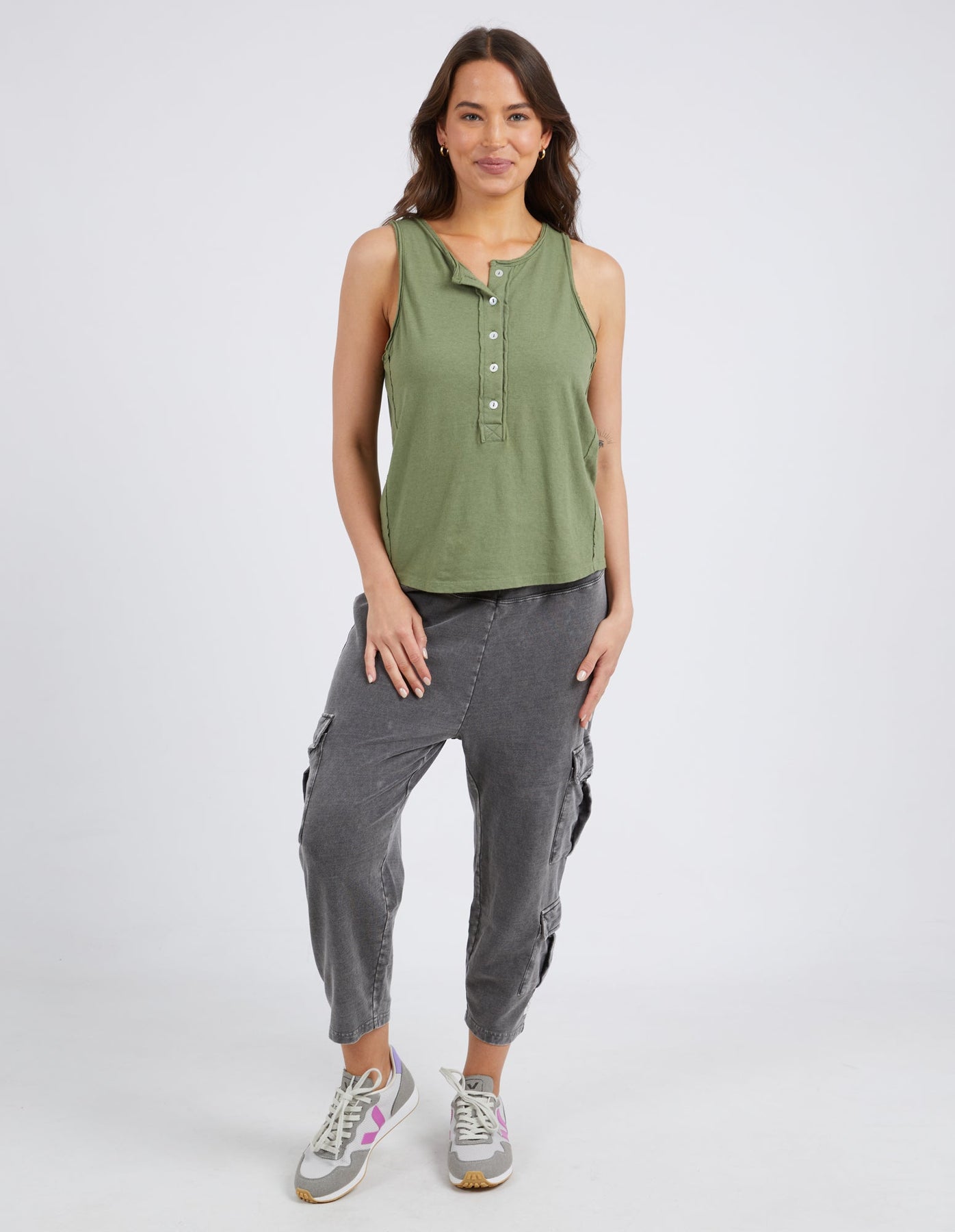 Suri Tank - The Ideal Seasonal Tank. The Suri Tank In A Lightweight Hemp And Cotton Blend Is The Ultimate And Laid Back Style. Featuring Raw Edge Detail On The Neck And Sleeve And Buttons On The Front Placket, Team With The Suri Cargo Pant For The Ultimate Relaxed Seasonal Look.