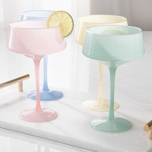 Enhance your summer gatherings with these pastel-toned coupe glasses. Featuring a subtle white rim and modern taper silhouette, they bring a touch of elegance to your table. These 160ml coupe glasses make a perfect gift for friends or loved ones who enjoy hosting or appreciate chic homewares.